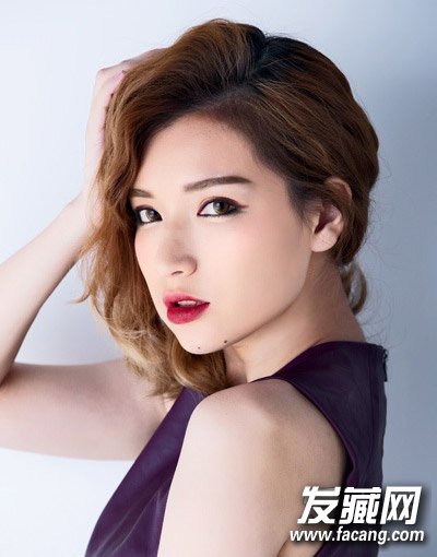 简约的中发增添松散的S型发卷,再用复古的亚麻色