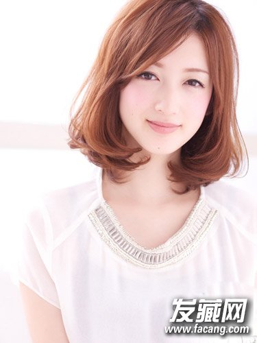 ,配上简单的荷叶头,偏分露出小巧的脸型,白皙的皮肤平添温婉的魅力。