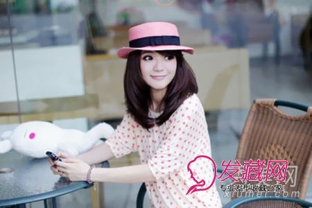 内扣的直发梨花头很清纯优雅,时尚粉色礼帽的配戴更抢眼夺目。