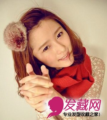 齐肩的短发彰显女孩青春活泼的俏丽气息,刘海选用一个毛绒绒的装饰夹子固定住,给造型增加了清新甜美的少女气息。没有刘海的发型显得女孩五官眉目非常清新。黄色的挑染色尽显时尚范。