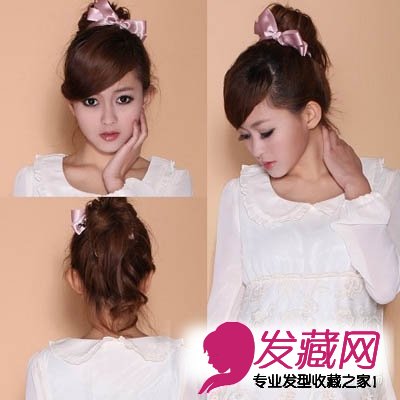 斜刘海的花苞头,在发饰的点缀下更加靓丽咯!