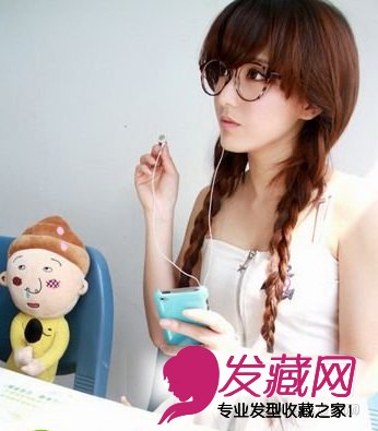 ,上粗下细的发辫自然简单,但又不失时尚个性,发辫中参杂的碎发发尾增添发型的灵动感,包裹脸蛋的厚重的刘海展现清纯可爱气质的同时还修饰了脸型。