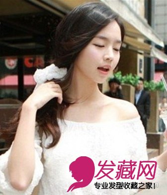 厌倦了往日随意披在肩上的卷发了吗?如果产生了视觉审美疲劳,不如尝试利用简单的白色发圈轻轻束起头发偏向一侧,搭配同色系白色露肩上衣,露出漂亮的锁骨,风情无限。