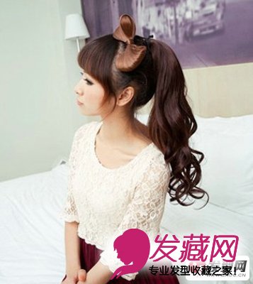 长发扎起一度高高的龙尾小辫儿,紧张的出现出女生青年生气的动感气味,动感卷曲度的发型设计龙尾发型,淑女灵巧的滋味尽显,这款发型设计发型很文雅诱人的哦!