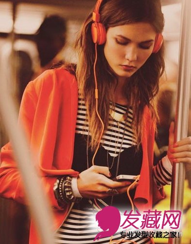 看似随意的发型,在用了今年大热的亮橘色耳机的搭配,显得十分有文艺气息。