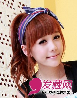 最新韩式发型的时尚马尾造型,凸显女性的青春靓丽感,高高扎起的马尾发型,青春可爱无敌,红棕色的染发发型,不仅增加了这款发型的时尚度,也衬托出了女生更加白皙的肌肤,可谓是一举两得,不愧是今年最流行的发型之一。