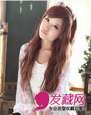 散发着浓郁的优雅气息,大波浪卷发随性自然的披散在肩上,自然大方。斜分的刘海凸显出一张甜美的脸蛋,发箍的搭配,成为人人受宠的甜美女生。