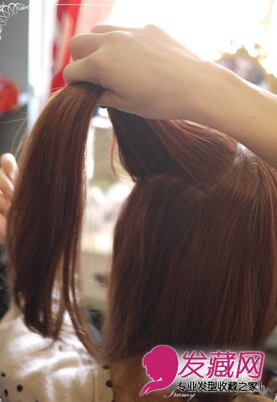 先把头顶头发分成二区块,抓起一部分有份量的头发