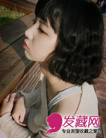 黑色齐刘海的泡面卷短发,还有减龄的效果呢