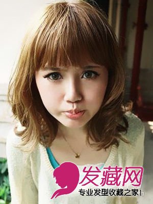 抢镜的金棕色梨花头,整齐发帘凸显明亮的大大双眼,显清新灵气,低调又显眼的颜色,有减龄的年轻效果,带来活泼动感的少女味道,轻轻嘟嘟的小嘴,可爱非常。