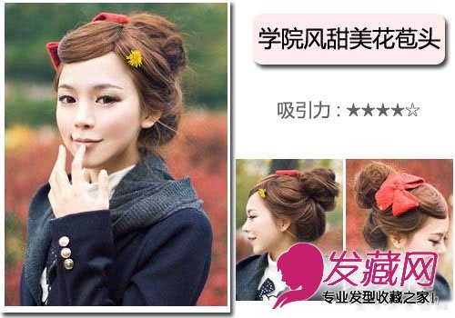 迷人关键:把头发全部挽起来,扎成一个随性的花苞头,非常清爽利落,给人精神奕奕、充满活力的感觉。再别上一个红色的超大蝴蝶结发饰,将甜美风进行到底。