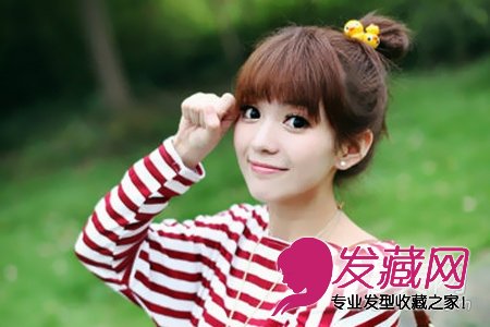 糖果发饰扎小丸子:可爱发饰扎起的小丸子头看起来非常的天真可爱,俏皮无敌,搭配整齐的刘海更有减龄效果。