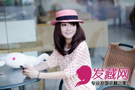 :内扣的直发梨花头很清纯优雅,时尚粉色礼帽的配戴更抢眼夺目。