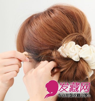 步骤四:将抽出来的发丝用U型发夹夹好。再做好最后的整理修饰,使