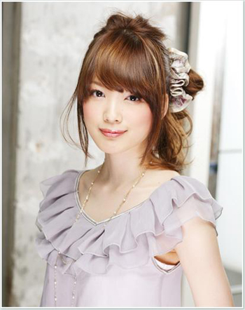 想要配合今年的森林系女孩风,不妨试一下这款发型。从头顶区开始,利用帮麻花辫的方式编发,在耳侧用大肠圈将头发绑成一个花苞的样子,盛夏的头发就用卷发 棒弄卷之后自然垂下来,就能轻松成为森林精灵般的女孩。纷繁的绑发,让人忘记脸蛋的大小,连看上去自然不再肥大。