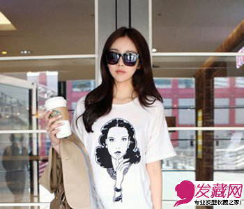 这款中分发型非常简单大方,自然的长发柔顺亮泽,中分长刘海修饰出迷人的小v脸,搭配大大的墨镜,显得非常青春活力。