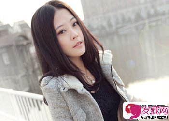 发型看起来清新纯净,长刘海修饰出完美的瓜子脸效果,黑色发衬托的肌肤格外白亮。