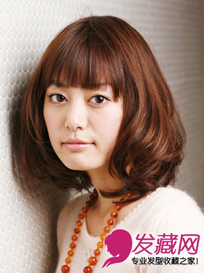 中长发波波头发尾处加上大波浪的卷曲效果,展现出女性的优雅魅力,卷曲的发束轻轻的包裹住你的脸颊,大饼脸是不是立刻缩小了一倍?