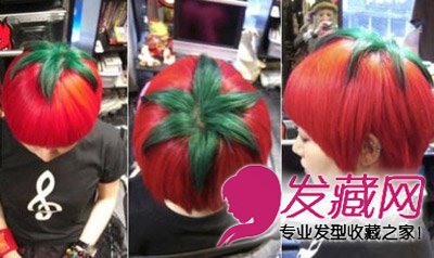 您是有多么的喜欢番茄呀,不惜连头发也做成这个样子!层次感的染发,红配绿的纠结搭配真的是一颗立体感十足的番茄呀。