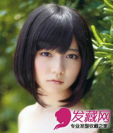 剪出齐耳的造型,乌黑的发色将肤色变得白皙。整体发丝处理成在中部内扣,营造出一个恰到好处的弧度,柔和了方脸的轮廓。