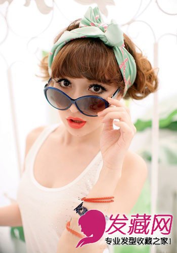 卷出内扣弧度,短短的头发烫出可爱的发卷。一条清凉的薄荷色系发带将卷发拢在一起,颇有几分摩登女郎的俏丽感觉。