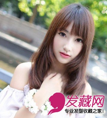 型增加发型的造型度,暖棕色适合这个温暖的积极,长脸女生配个齐刘海看上去可人很多。