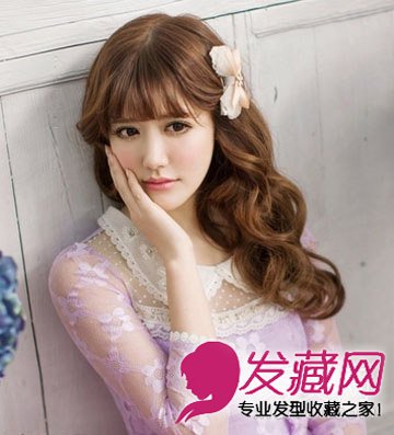 金色的大波浪卷发焕发出迷人的女人味,这样自然的披着配上一朵粉嫩的蝴蝶结,加上蕾丝裙,绝对靓丽出镜。