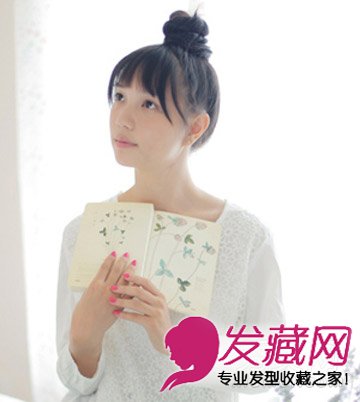 超百搭的时尚韩式丸子头发型,高扎到发顶的发髻更能凸显女生的青春活泼气质,搭配刘海最显脸小!