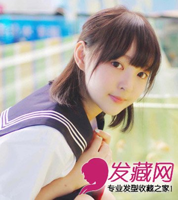 扎简单的半披肩发造型,齐肩发搭配齐刘海修颜,甜美纯真。
