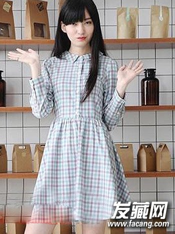 发型,自然的批示下来,搭配格子连衣裙,更显清新可爱。