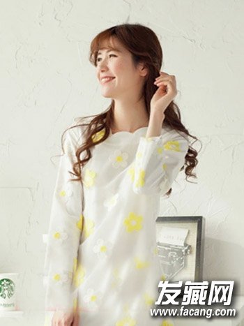 想必美眉们都换上了美眉们的春装了吧,那么怎么搭配发型好看呢?一头棕色系的卷发发型,打理成齐刘海的半扎发发型,搭配简约的连衣裙,清新淑女范突显。