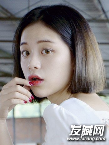 适合轻熟女们打造的一款韩式职场发型,露额中短发波波头造型,深棕色的挑