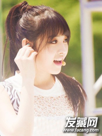 想知道直发发型怎么扎最好看的MM们可以尝试的一款简单直发马尾辫发型,深棕色染发的齐刘海长直发扎高马尾,很有活泼俏皮的气质。