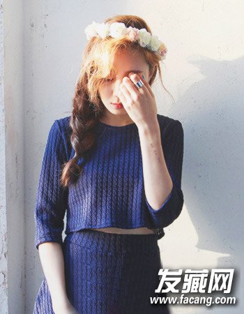这一款蓬松的侧边编发与卷发刘海搭配起来,不仅甜美而且时尚,最重要的是搭配上花环点缀,显露出个性与时尚的一面。