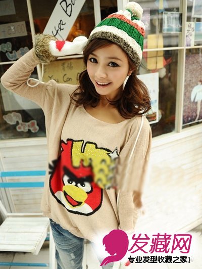 扎双马尾+毛线帽子的搭配超可爱超俏皮。