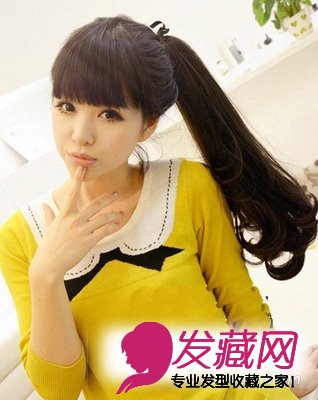 微卷的长发扎高马尾,十分的动感有活力,搭配整齐的