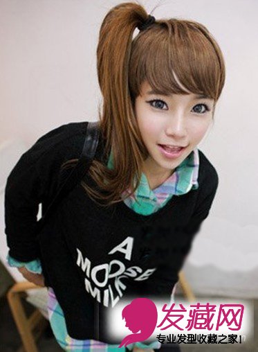 韩系风味的侧扎马尾,搭配圆润的厚刘海可爱萝莉气息十足。