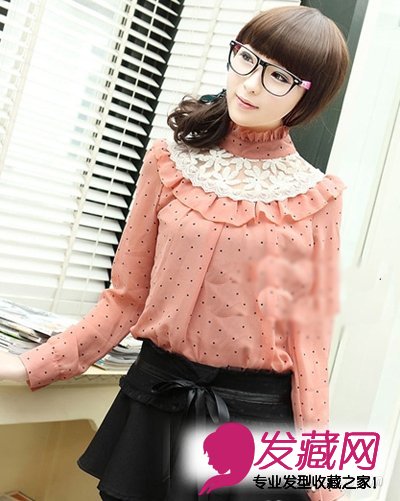 减龄的齐刘海侧扎马尾,搭配黑色眼镜年轻OL气息十足。