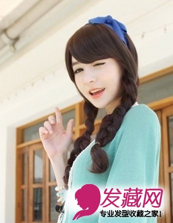 的修饰脸型,再配上一个蓝色的蝴蝶结头巾,实在是萌的不行啊!