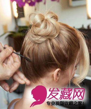 固定好了圆髻的位置,短的头发可能会出来,Townsend说“那样就不太好看了。”但是你不想整个髻的短发继续散落下来,可以使用末端开口的卡子重新卡住后面的头发。