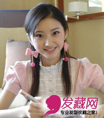 斜分刘海双扎马尾发型 简单时尚