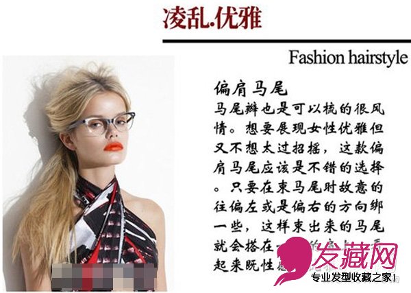 马尾辫也是可以梳的很风情。想要展现女性优雅但又不想太过招摇,这款偏肩马尾应该是不错的选择。只要在束马尾时故意的往偏左或是偏右的方向绑一些,这样束出来的马尾就会搭在一边的肩上,看起来既性感又优雅。