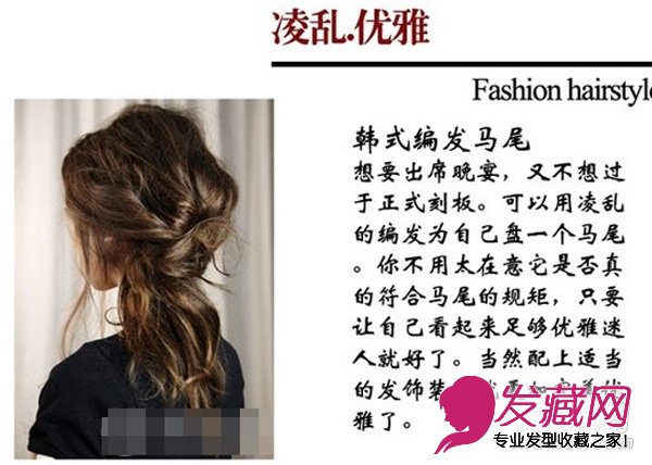 想要出席晚宴,又不想过于正式刻板。可以用凌乱的编发为自己盘一个马尾。你不用太在意它是否真的符合马尾的规矩,只要让自己看起来足够优雅迷人就好了。当然配上适当的发饰装点就更加 完美 优雅了。