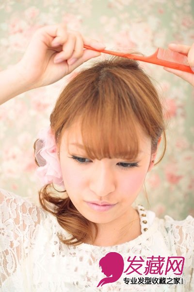 用密齿梳子将发顶挑出蓬松。