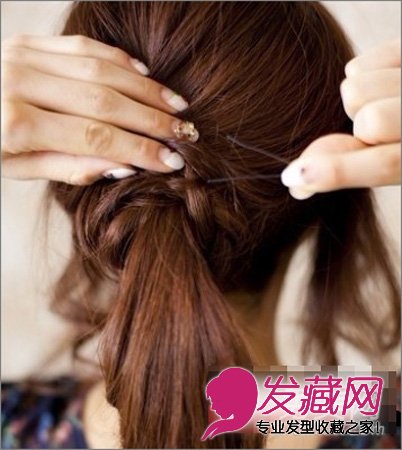 步骤4、将编好的辫子绕上马尾头,用发夹固定。