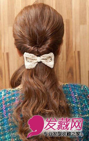 第二款蝴蝶结马尾辫:超级简单的马尾开洞技巧,将发束塞入即可做出蝴蝶结般的柔美弧度,赶快跟小编学起来把!