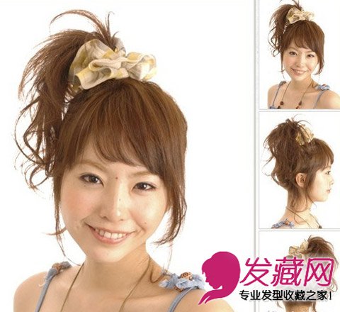 将马尾头扎成高绑的造型,蓬松的感觉加上侧扎的感觉显得非常另类,简单的厚刘海增加修颜程度。