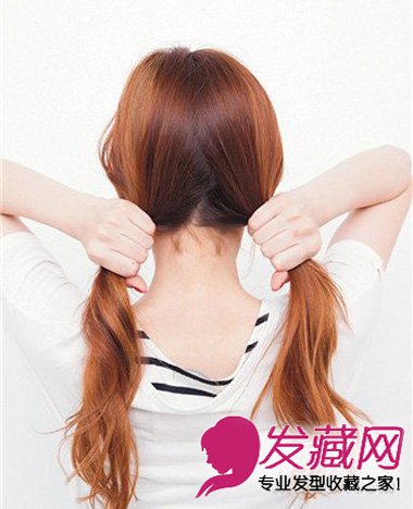 斜分刘海双扎马尾发型 简单时尚
