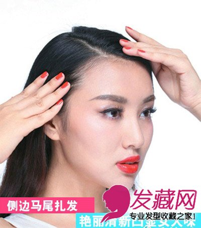 侧边马尾扎发图解 清新侧马尾显女人味(2)