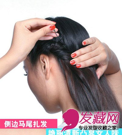 侧边马尾扎发图解 清新侧马尾显女人味(4)